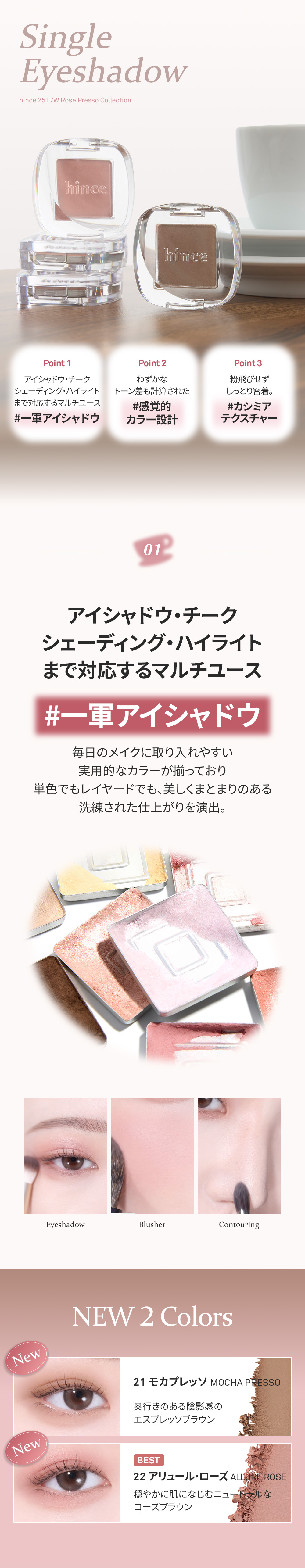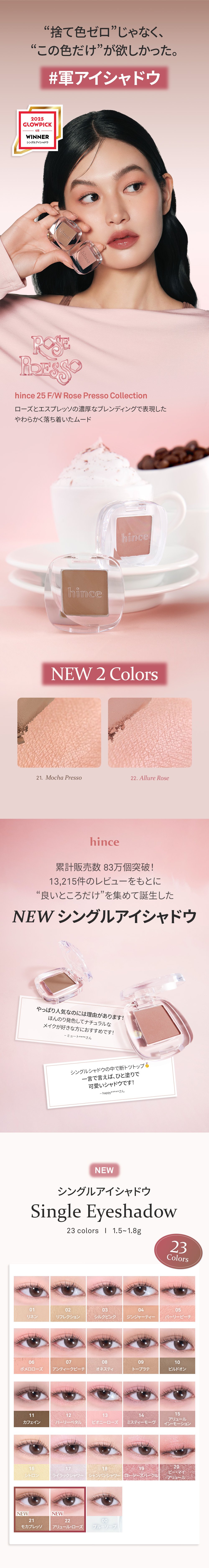 21モカプレッソ、22 アリュール・ローズともにカルミンが含まれております。その他の成分は、下記をご確認ください。
