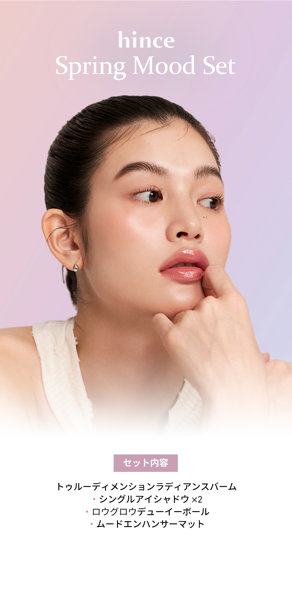 指やブラシで適量を唇にのばします。唇の他、チークやアイシャドウとしてもご使用いただけます。