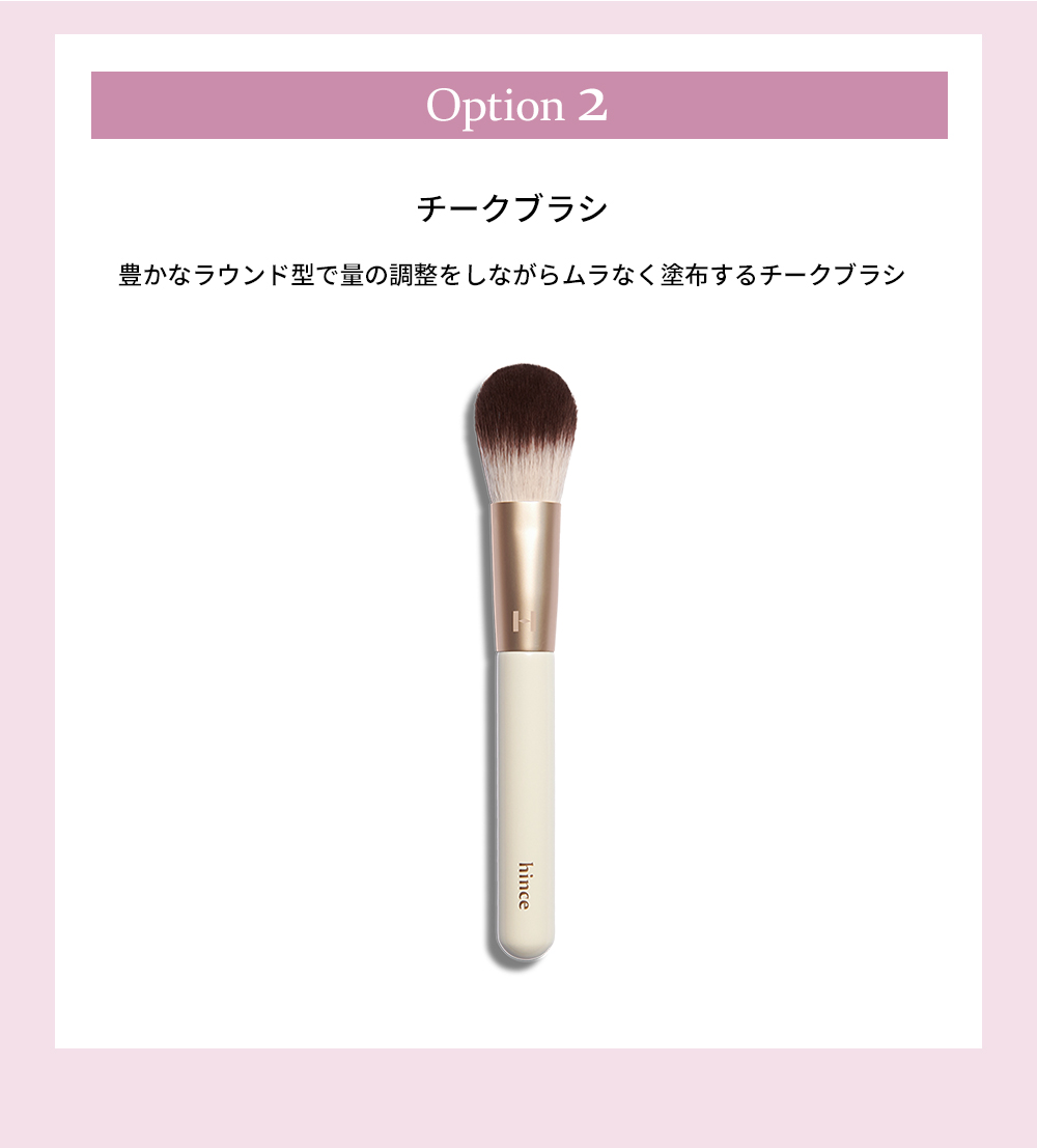 ブラシにまんべんなくパウダーをとり、ティッシュなどで表面についたパウダーを調節します。頬の内側から頬骨にかけてブラシを置くようにポンポンと色をのせ、色が薄い部分は重ね付けしながら全体を調節してください。