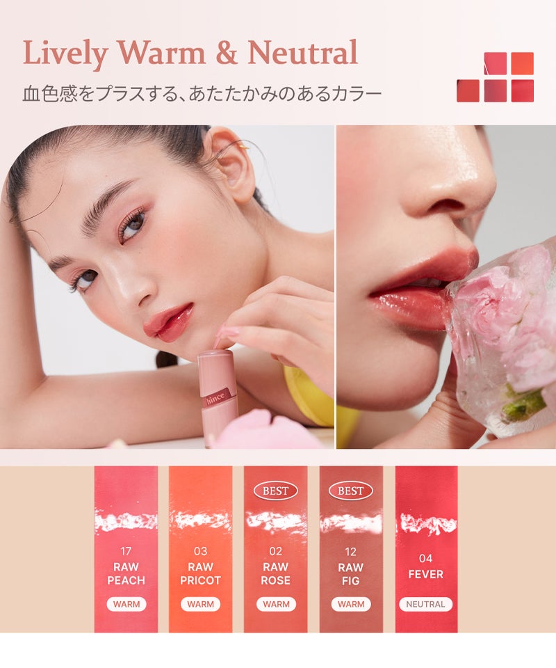 水、ジフェニルジメチコン、ビスジグリセリルポリアシルアジペート-2、オクチルドデカノール、リンゴ酸ジイソステアリル、トリメチルシロキシフェニルジメチコン、水添ポリイソブテン、ジグリセリン、ポリソルベート60、BG、セチルPEG/PPG-10/1ジメチコン、1,2-ヘキサンジオール、ペンチレングリコール、(アクリル酸ヒドロキシエチル/アクリロイルジメチルタウリンNa)コポリマー、セテアレス-20、スクワラン、酸化チタン、フェノキシエタノール、香料、エチルヘキシルグリセリン、黄5、赤227、イソステアリン酸ソルビタン、水酸化Al、ポリアクリル酸アンモニウム、酢酸トコフェロール、ヒアルロン酸Na、青1、加水分解ヒアルロン酸、(アルギニン/リシン)ポリペプチド、トコフェロール、アセチルヒアルロン酸Na、ソルビン酸