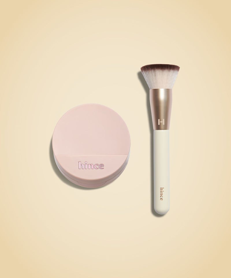 【ファンデーションブラシ】 ブラシにファンデーションを十分につけて、肌のキメに沿って軽く内側から外側に塗ります。顔全体にファンデーションを塗布した後、ブラシで軽くたたいて密着力を高めます。