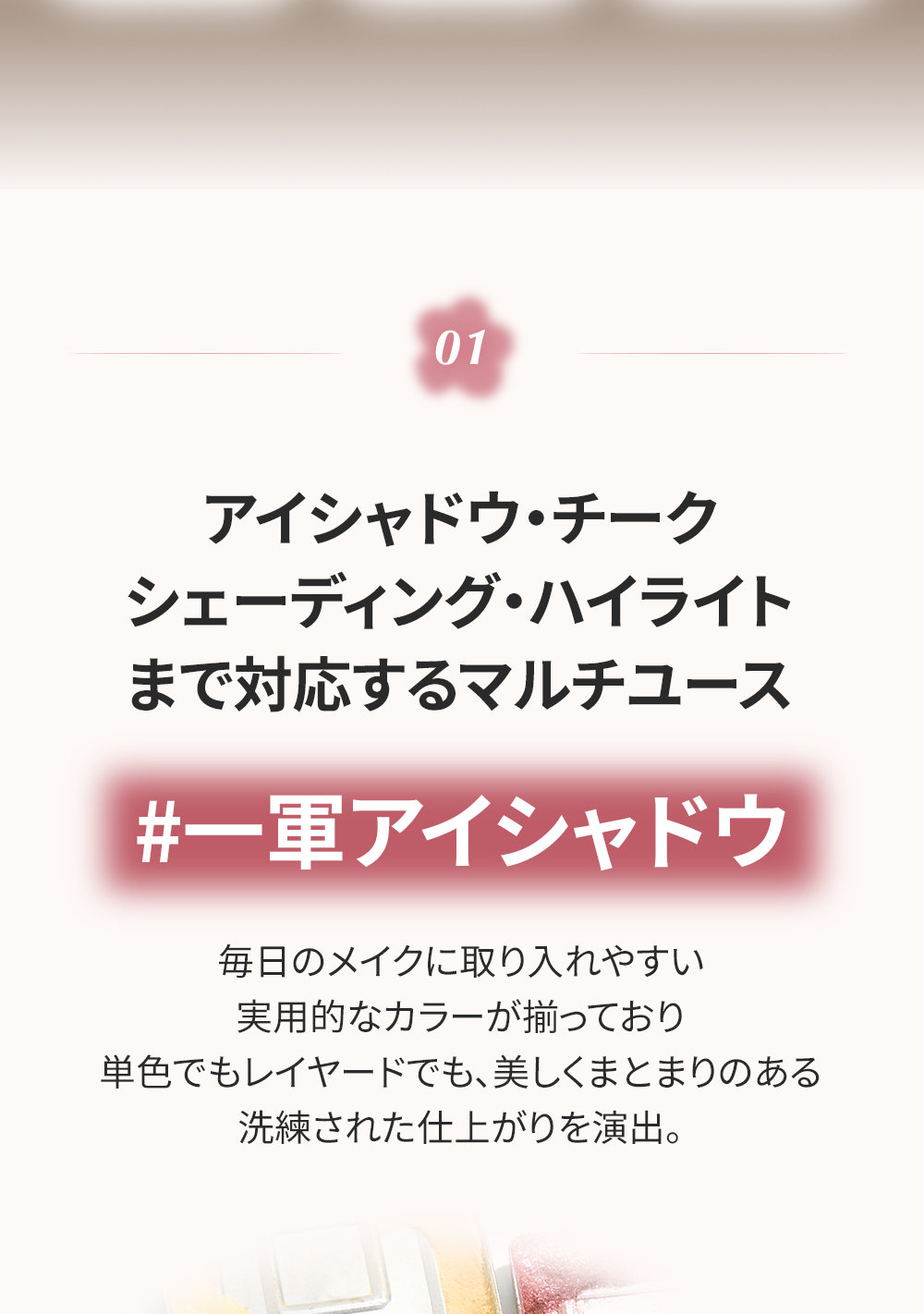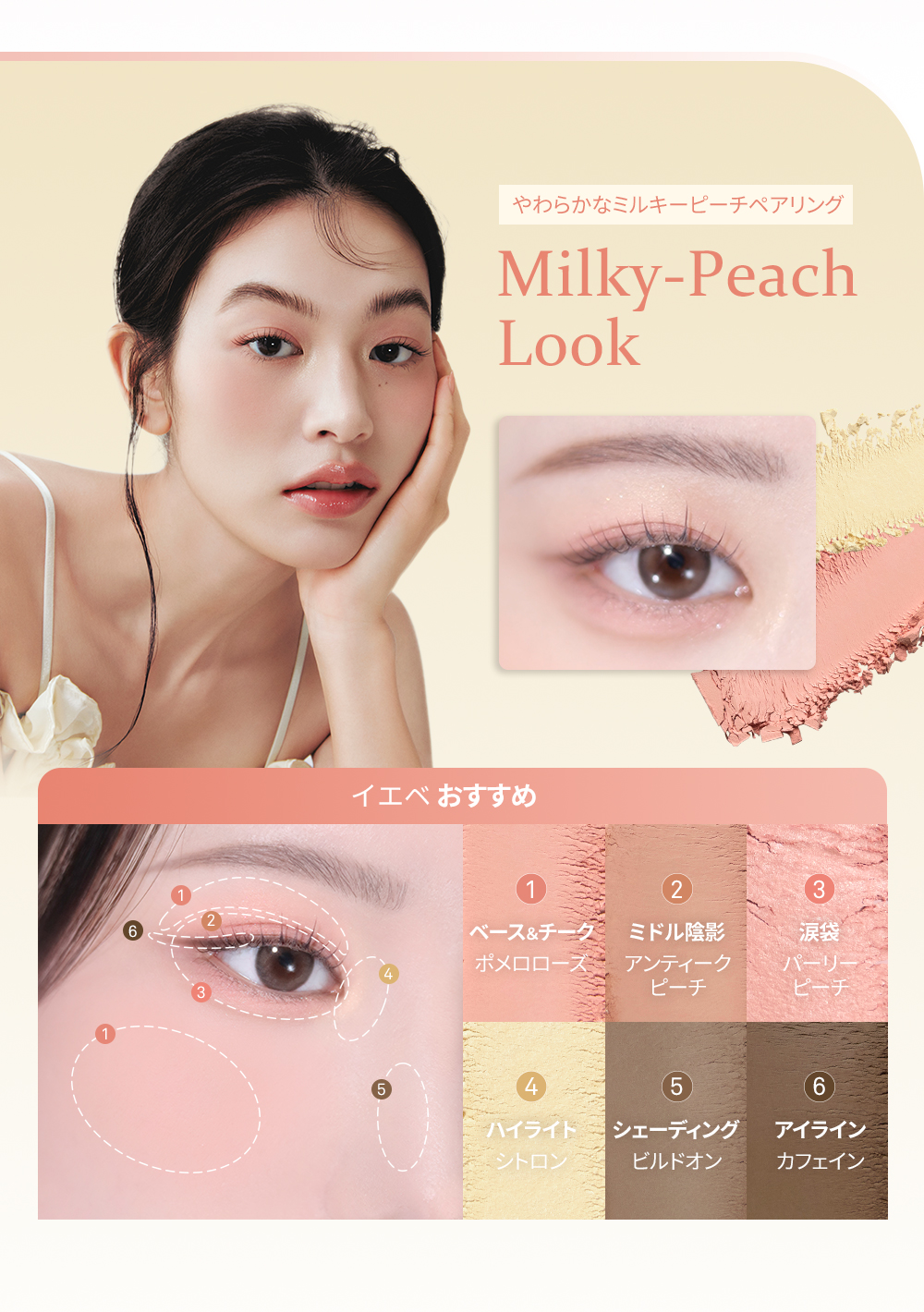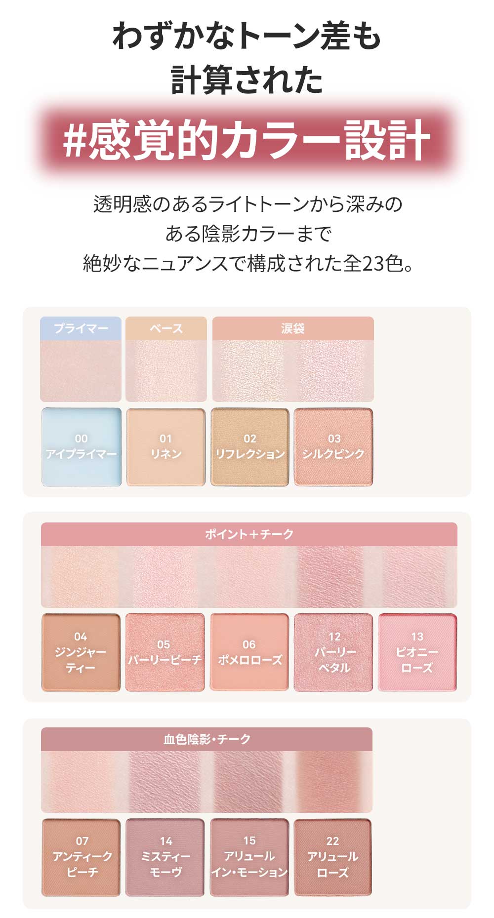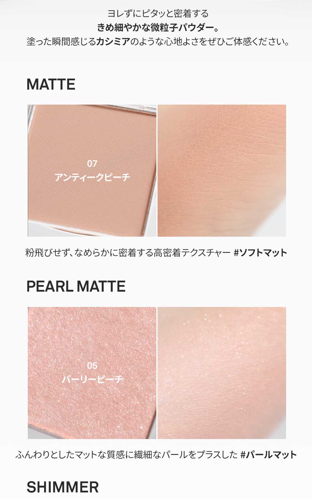 落ち着いたくすみ感のあるピーチカラー。マットな質感が大人のやわらかさと品を引き立てます。