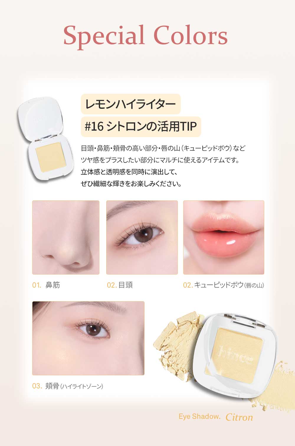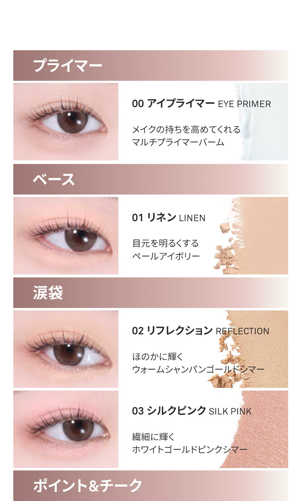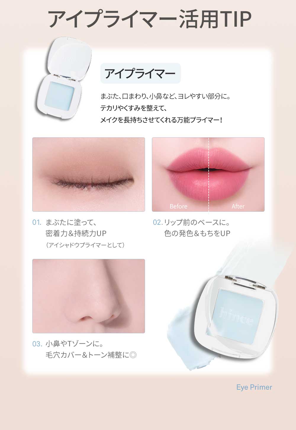 指先、またはブラシ・チップに適量をとり、まぶたにのばします。