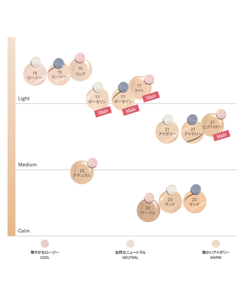 くずれないカバー、落ちないツヤ。W持続を実現した質感革命クッション。66%がスキンケア成分*で肌をいたわりながら、薄膜で肌に密着し、気になるトラブルはカバー。微粒子パウダーが肌に密着し、乾燥しらずのセミマットな質感を演出します。アジア人の肌色を研究した新たなカラーチャートの5色で、より素肌に近い仕上がりを実感頂けます。